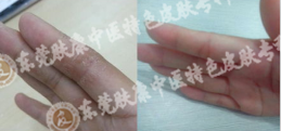 王蓉(化名)患角化性湿疹已经七八年,反复用外用药膏涂抹,不但没有减轻病情反而越加重,患部皮肤色素沉着,皮肤粗糙,肌肉萎缩,2015年来肤康就诊。皮肤科的柳汉友生为她采用中西医结合的方法治疗,具有清热利湿凉血的功效,经一个多疗程的治疗,皮肤色素沉着消失了,皮肤光滑不痕迹。